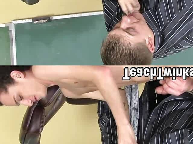 Student Phillip Ashton cums from teacher Tyler Dawsen mouth