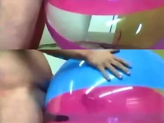 Big inflatable beach ball fuck cum inside