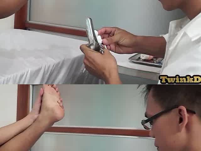Asian doctor examines and toys twinks ass in order