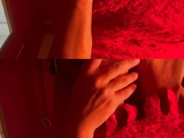 "Flashlight jerking off cumshot long video in red"