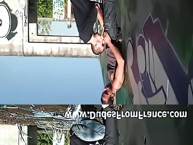 Outdoor blowjob for gay French guys in public