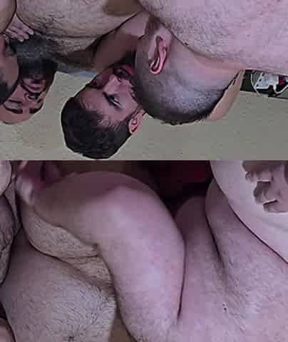 Threesome of Fat Men Fucking Bareback Until They Are Covered in Cum (part 1)