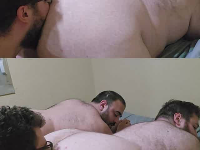 Threesome of Hairy Fat Men Suck Each Other's Cocks and Fuck Bareback
