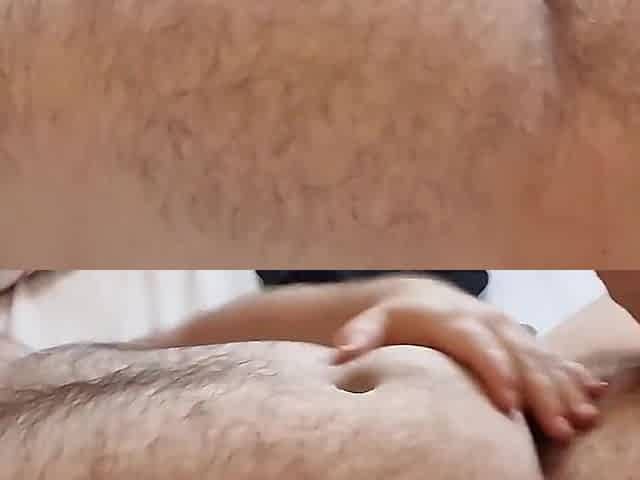Jerking off small fat hairy sweaty penis and Cumming