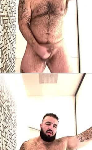 Furry chested muscle bate and cum while talking on mobile