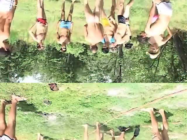 Twink orgy out by the pool with active cock eating and ass pounding, then they jerk off