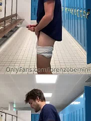 Masturbation in locker room while other men shower and change