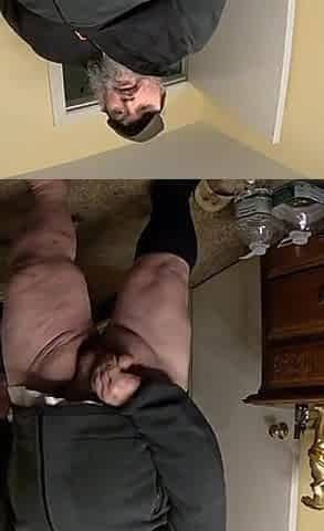 White head grandpa quicky in restroom