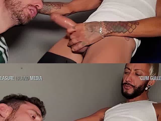 Verbal White Cock Sucked by Tattooed Black Man