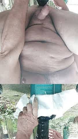 Gray haired mature masturbates while his ass is bare banged