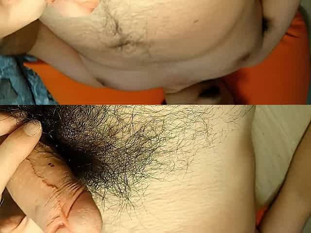 毛深いぽっちゃりおじさんのアップでオナニーで射精大爆発!