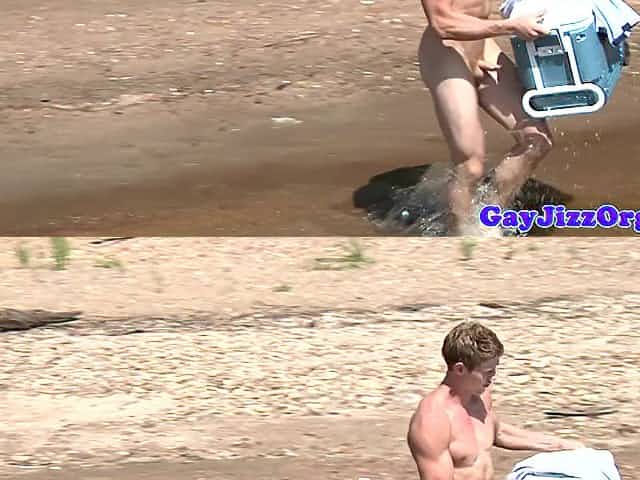 Gay outdoor orgy action after skinnydipping