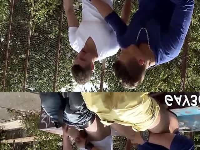 Young Top Barebacking His Partner Outdoors Before Coming