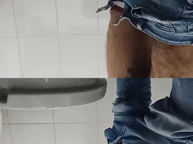 Masturbation and Urination in Street Bathroom