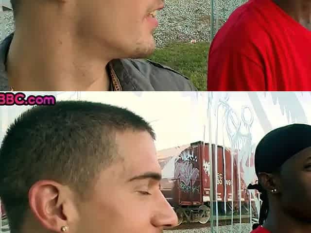 Black gay thug pulled out and publicly fucked outdoors with white top