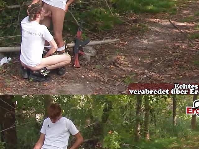 Skinny Military Gays fuck bareback anal outdoor in forest
