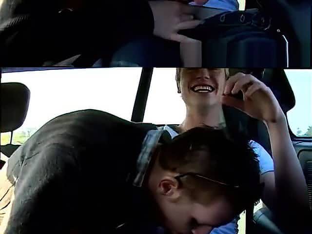 Black guy blowjob a young white boy in the car