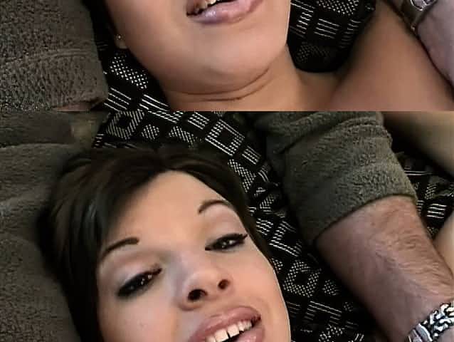 Gentle brunette with perky tits has sex with stranger while husband enjoys