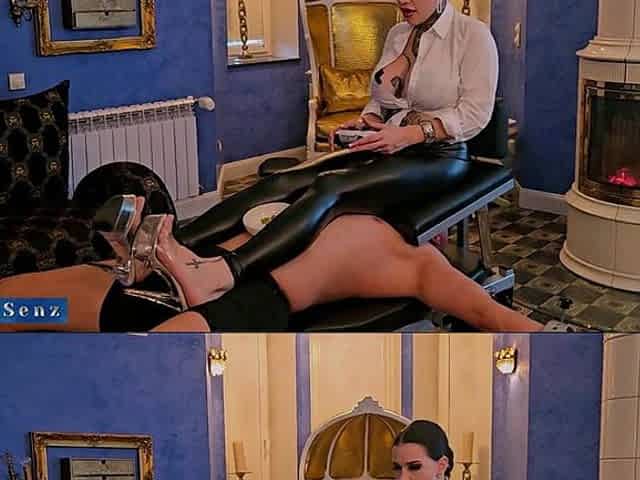 Lesbian Strap-on Pvc Video Kinky Dominatrix And Submissive Girl With Wet Pussy