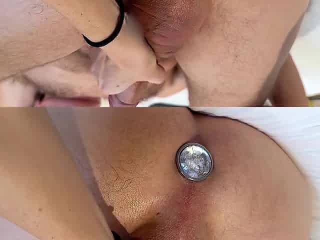 1st time pegging my husbands booty with a anal-plug and ding-dong