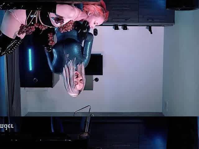 latex rubber bondage and food fetish, lesbian domination
