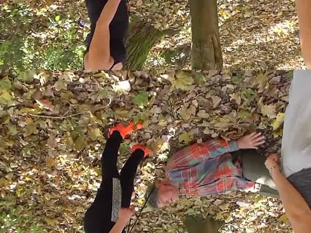 Dominating hanging pussy pinching in the park