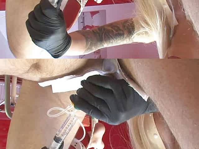 Two nurses sounding slave in chastity