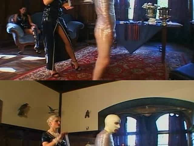Wrapped in foil humiliating with masked guy