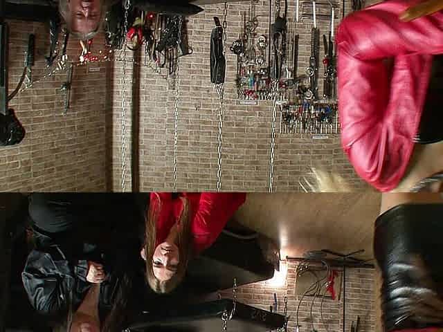 Male slave dominated in basement by German top