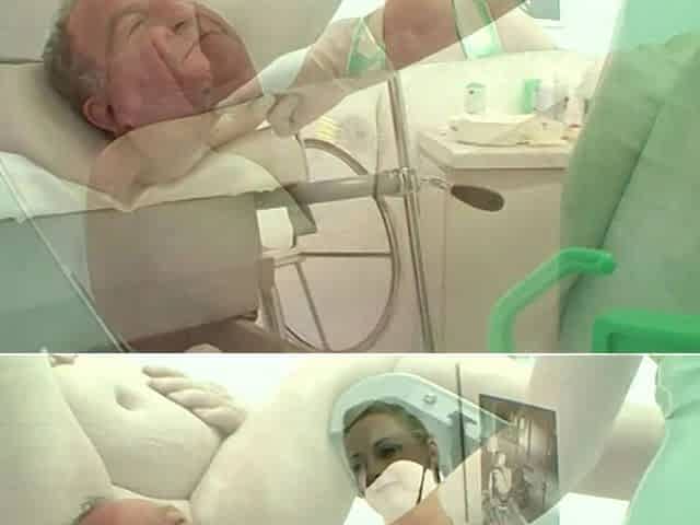 Mistress Luciana and Mistress Sandra fisting males ass with rubber gloves