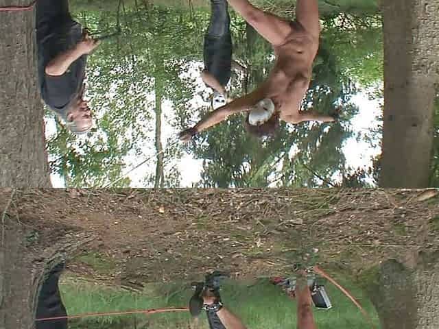 Humiliating stretching whipping in forest