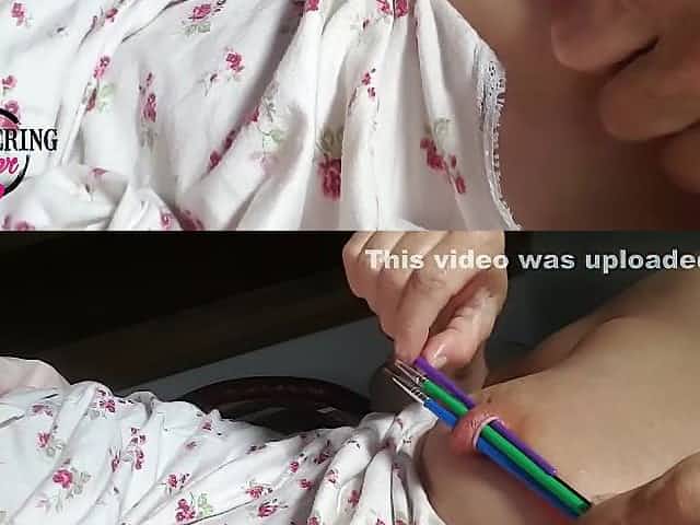 Nippleringlover Horny Milf Inserting Multiple Sticks In Extreme Stretched Nipple Piercing