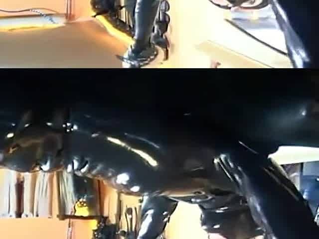 The Dominatrix Mistress Plays with Her New Human Latex Toy