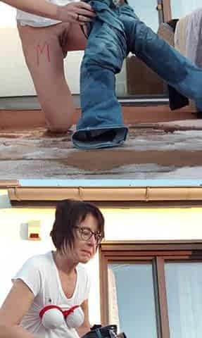 Squirt in Jeans on Balcony