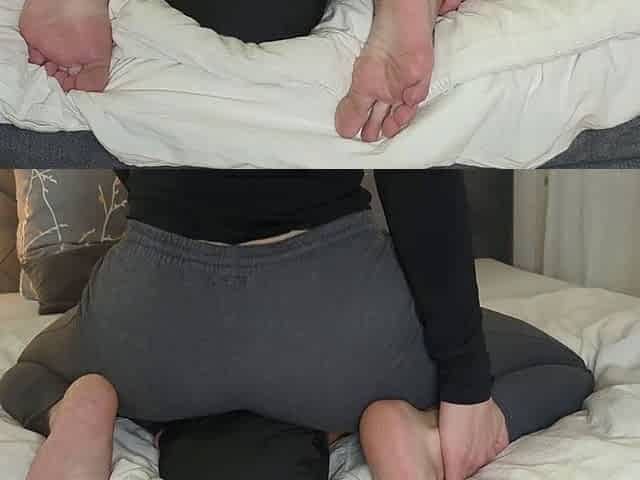 My wife is tied up on the bed waiting to pee and a little penalty is in order