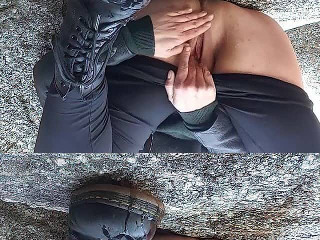 german girl stepping on and having a good time in high heel boots