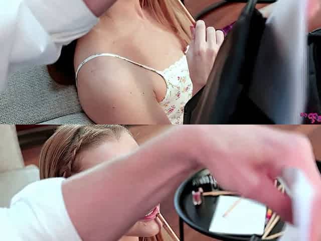 German blonde stepsister creampie POV
