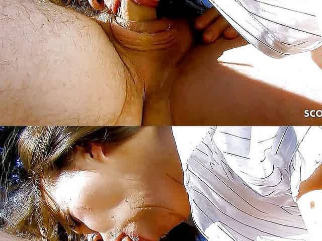 Blonde candid teen with hairy pussy banged by step dad