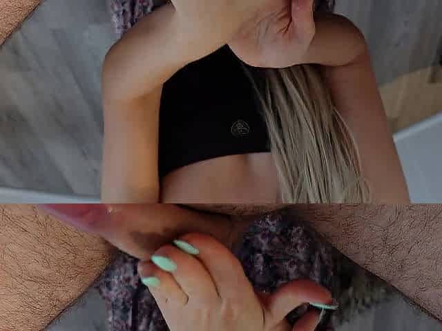 Beautiful Gal gives fleshly slow teasing tugjob, edging tugjob