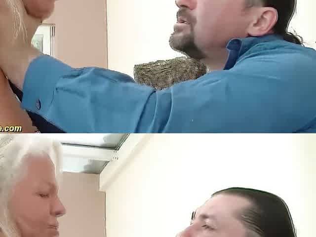 Naughty German Granny Pleasing Two Cocks at the Same Time