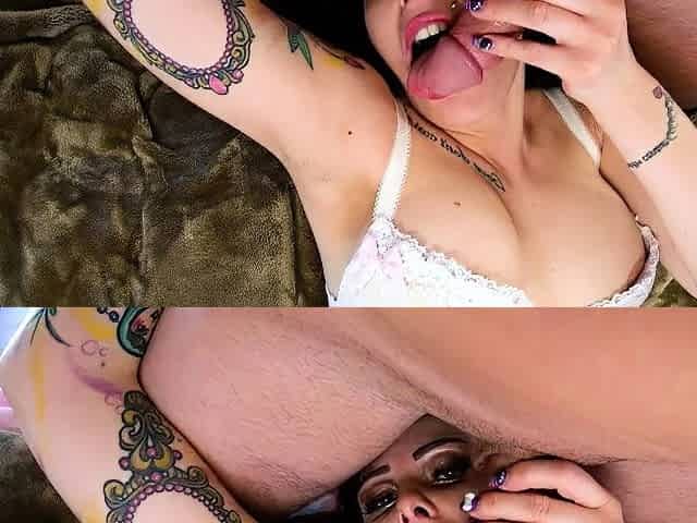 POV deepthroat with slut in white underwear