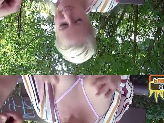 Adorable blonde enjoys giving outdoor blowjob and getting cum in her mouth - baebaezoe