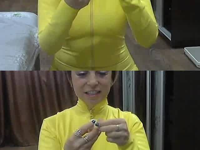 I'm Wearing a Yellow Latex Catsuit, Playing with a Condom and Being Such a Dirty Blonde! I Love Licking Latex!