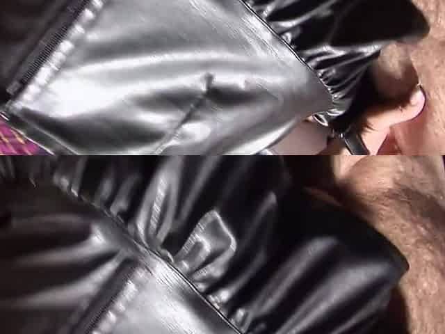 German wife in latex skirt and stockings sucks