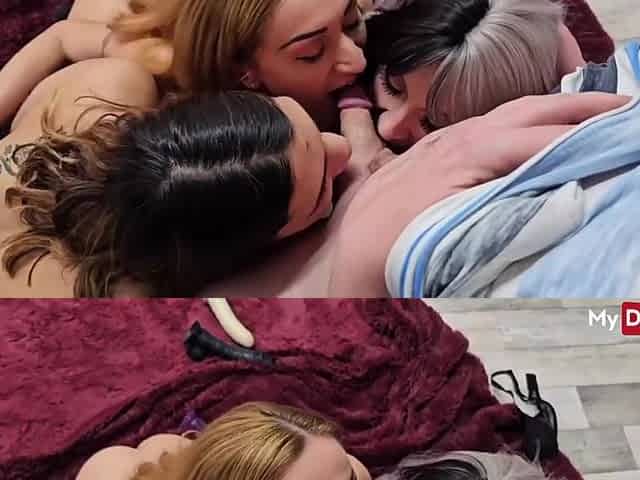 Lucky guy joins lesbian threesome and fucks all 3 of them - MyDirtyHobby