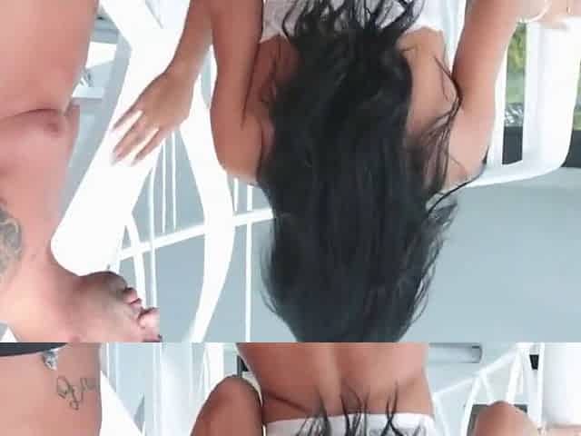 HeiBe naturliche groBe Titten nehmen einen groBen weiBen Sch