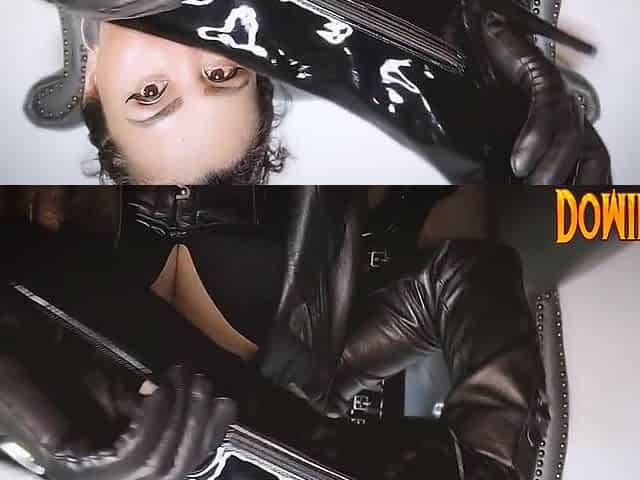 Leather mistress in leather outfit: zippering fetish
