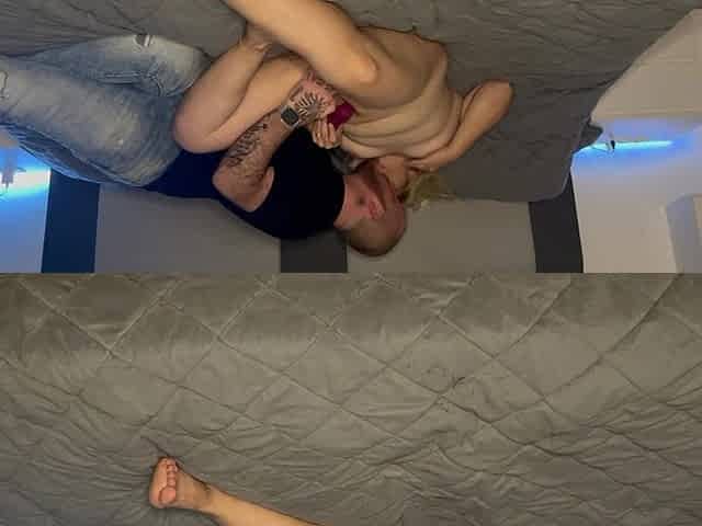 Blonde Girl Is Fingered by Her Boy to Climax, and She Has Her Vibrator on Her Clitoris While Doing so.