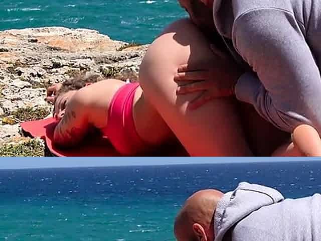 Brunette having outdoor sex on vacation