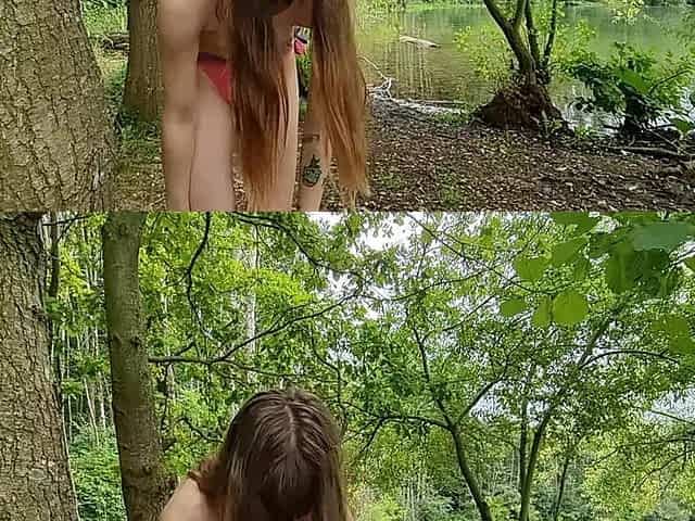 Skinny redhead has outdoor sex meetings in the forest